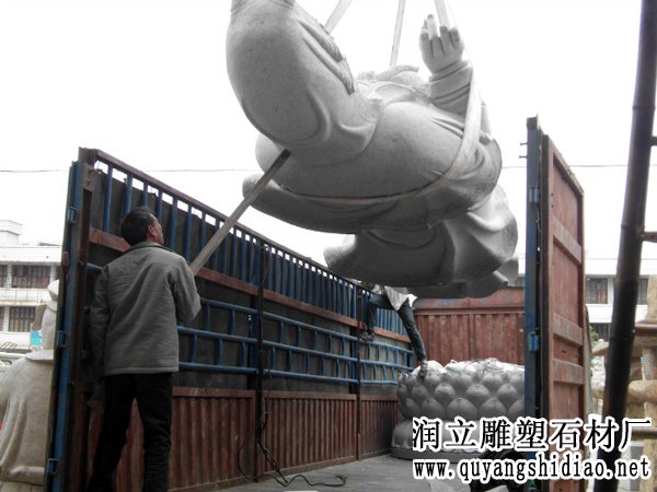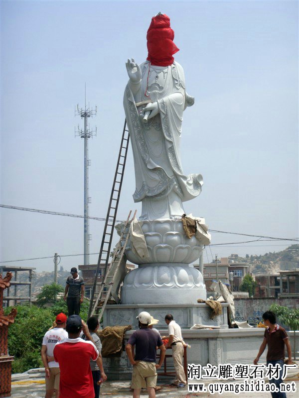 汉白玉雕塑是有曲阳润立雕塑石材有限公司设计雕刻而成,整个观音雕塑分为两体【身体-基座】其产品雕刻难度不大,主要是材料的开采收到一定影响,身体部分高度9.9米采用整块河北的优质汉白玉雕刻而成,为整个施工难度带来一定的影响,材料从下山运输到公司加工完毕只用了38天,当整件雕塑安装完毕后深受当地领导夸奖,不管从做工手法、到技术设计安装都出乎想象的在短期完成。